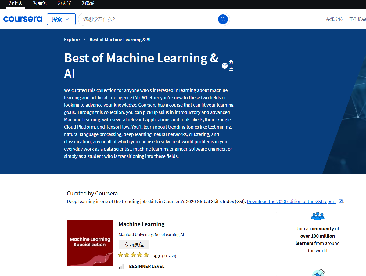 - 全球认可度:Coursera的课程和证书在全球范围内得到广泛认可,有助于提升学习者的职业竞争力。