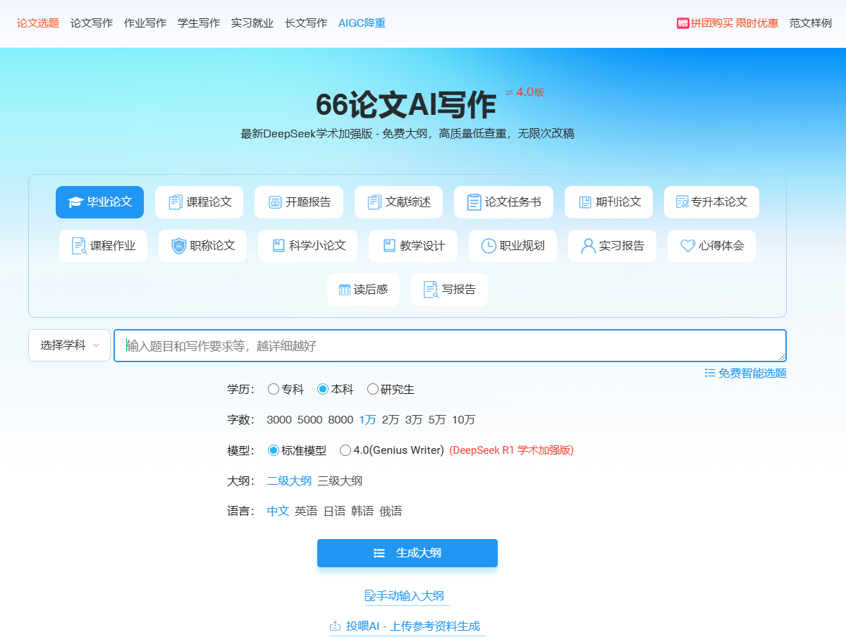 66AI论文是一款功能全面的AI论文生成平台,以下是对其的详细介绍: