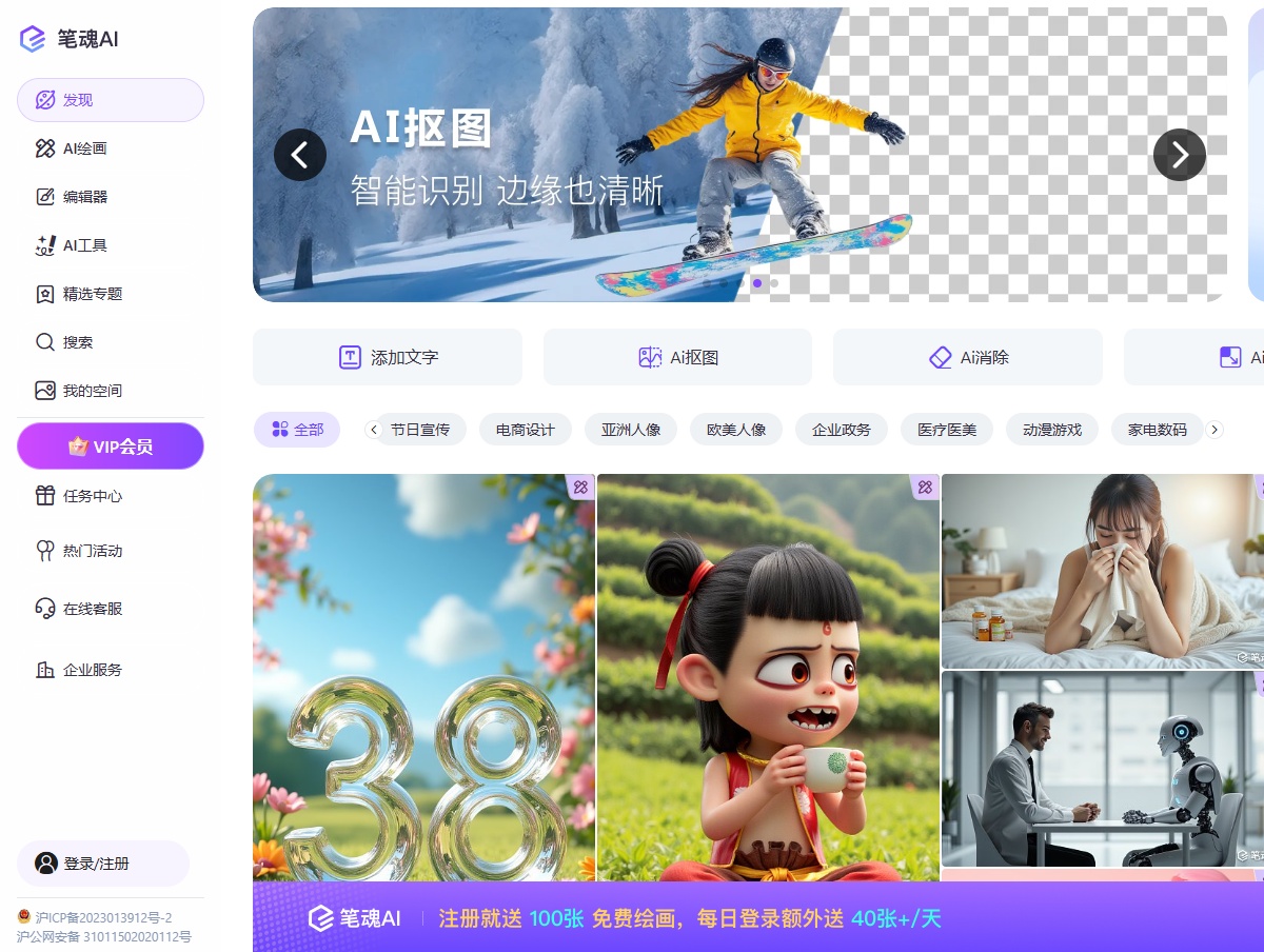 笔魂AI绘画是一款集合了多种AI绘图技术的在线工具,以下是对其的详细介绍: