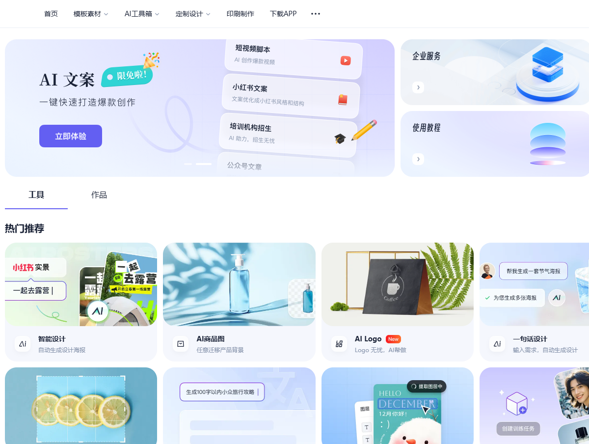 创客贴AI旨在将人工智能与强大的设计工具相结合,为用户提供丰富的平面设计资源和活动。无论是专业设计师还是普通用户,创客贴AI都能够帮助他们快速搭建出心目中的设计作品。其核心目标用户是那些需要快速、高效进行视觉内容创作的个人和企业,尤其是缺乏专业设计技能的用户。