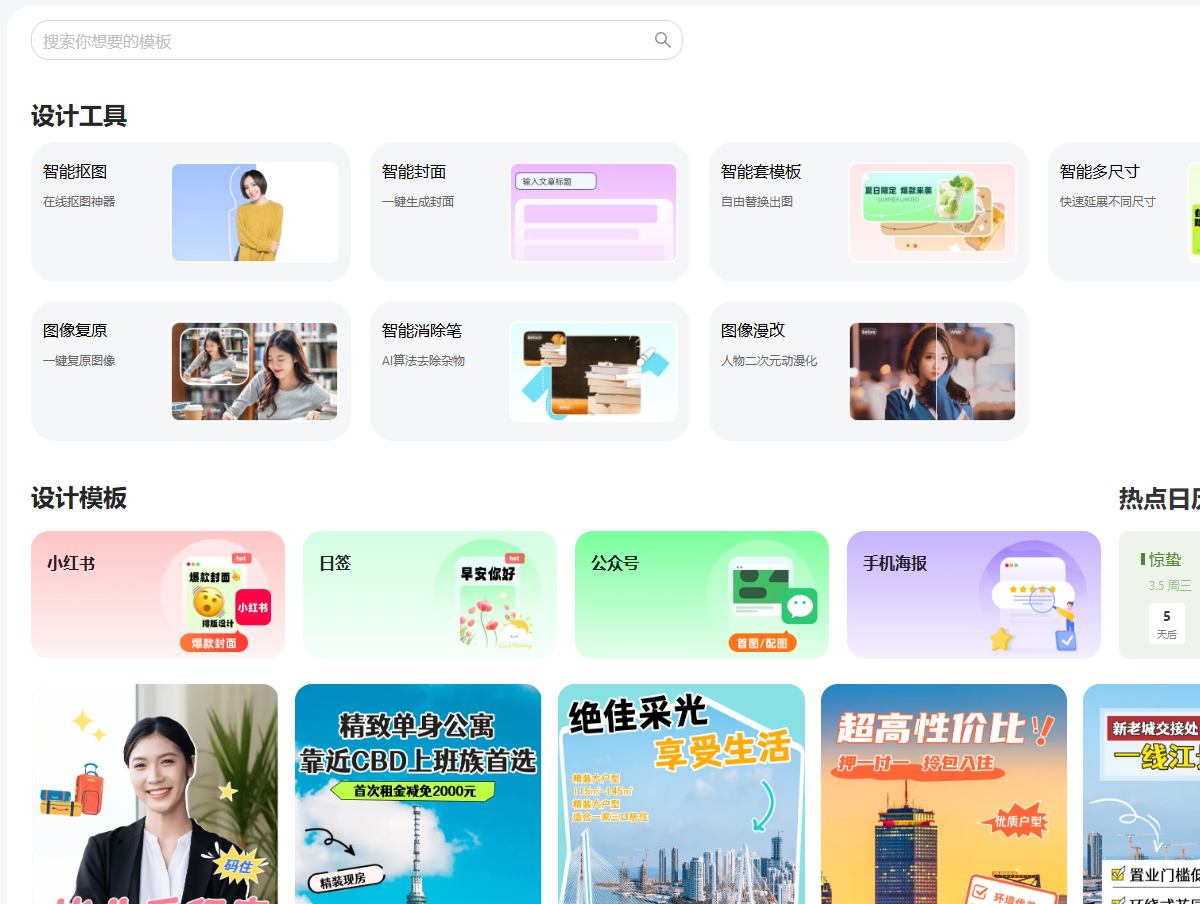 - 提供多种预设模板,适用于海报、社交媒体帖子、邀请函等多种用途,模板覆盖了不同的主题和行业。
