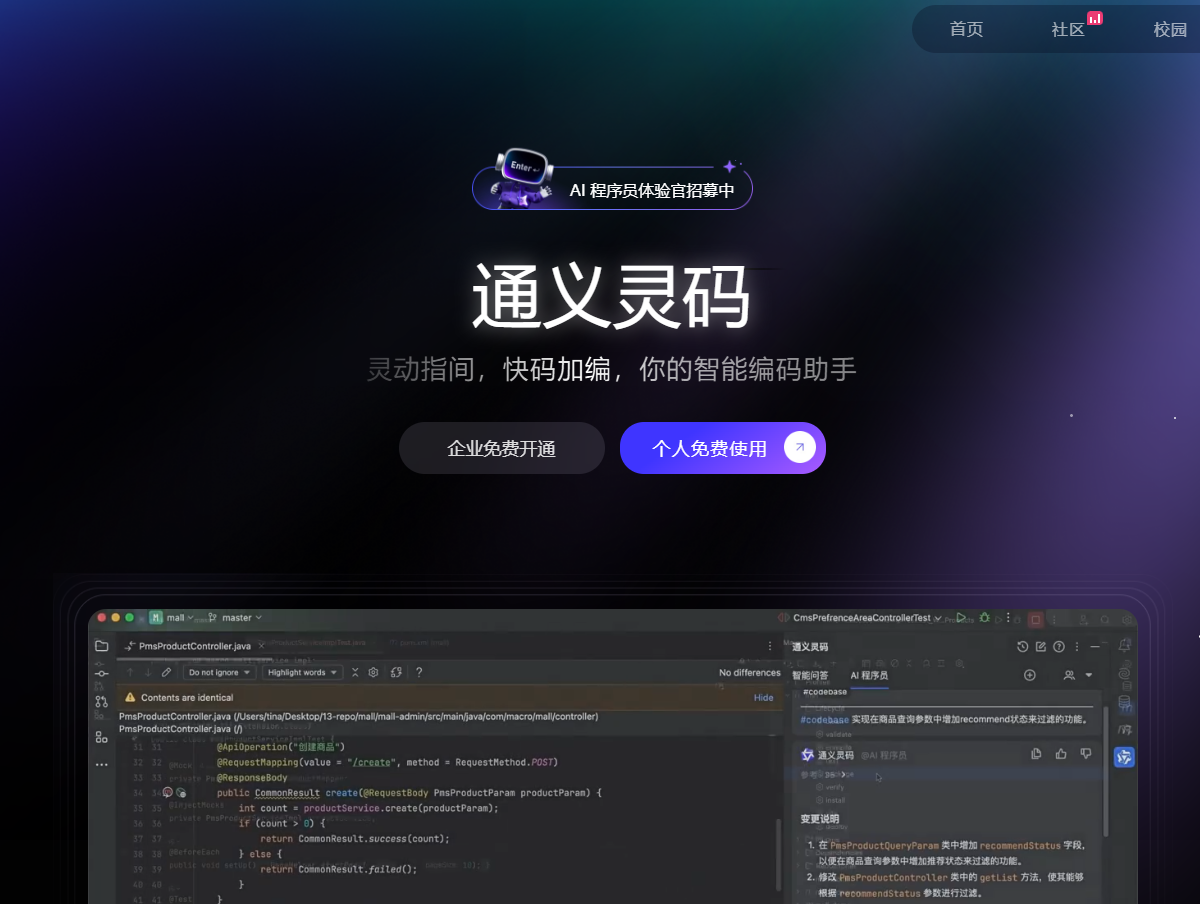 通义灵码的主要用户群体是开发者,特别适合那些需要快速编码、优化代码和解决技术问题的开发者。它适配多IDE的原生设计,符合开发者使用习惯,适配IDE原生主题、交互模式,让开发者感受到IDE的原生视觉和交互体验。