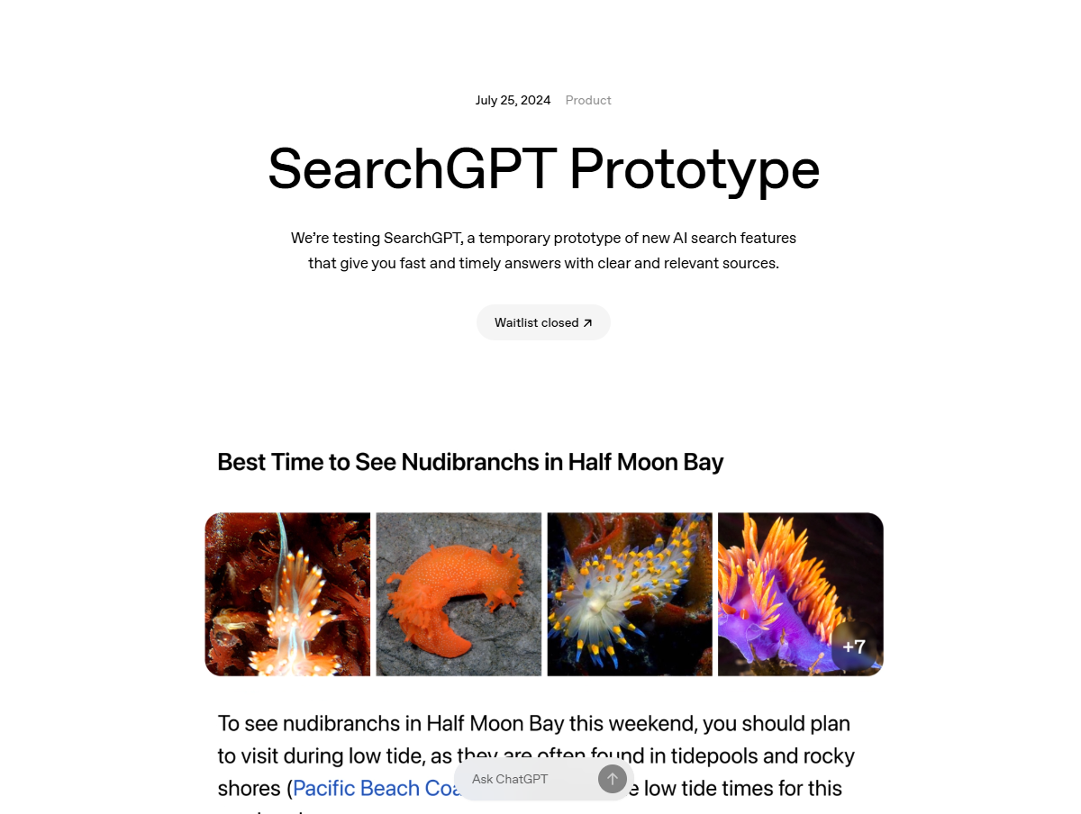 - 没有广告:与Google和Bing等传统搜索引擎不同,SearchGPT不会在其搜索结果中显示广告,为用户创造了一个更干净、更易于使用的界面。