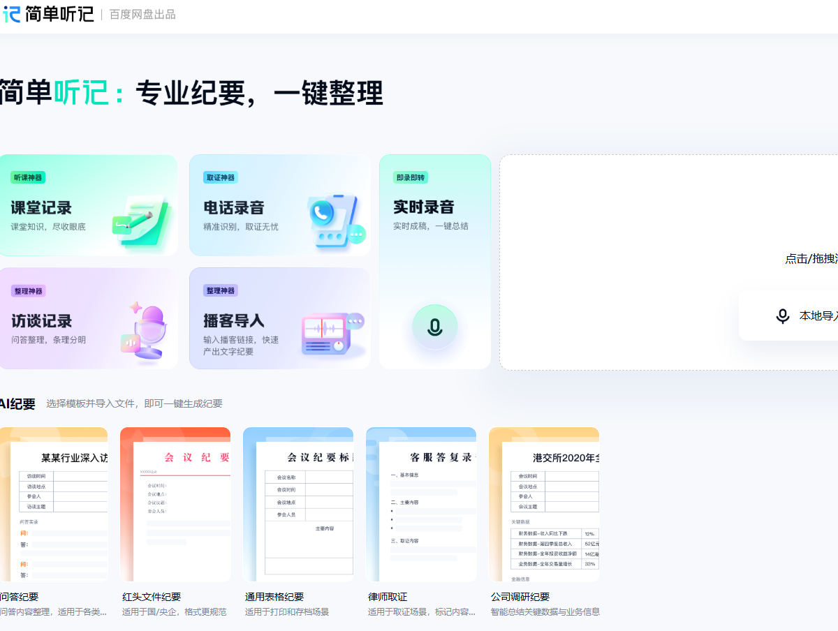 简单听记AI是百度网盘推出的一款集语音转文字技术与AI智能优化功能于一体的综合性产品与服务,以下是关于简单听记AI的详细介绍: