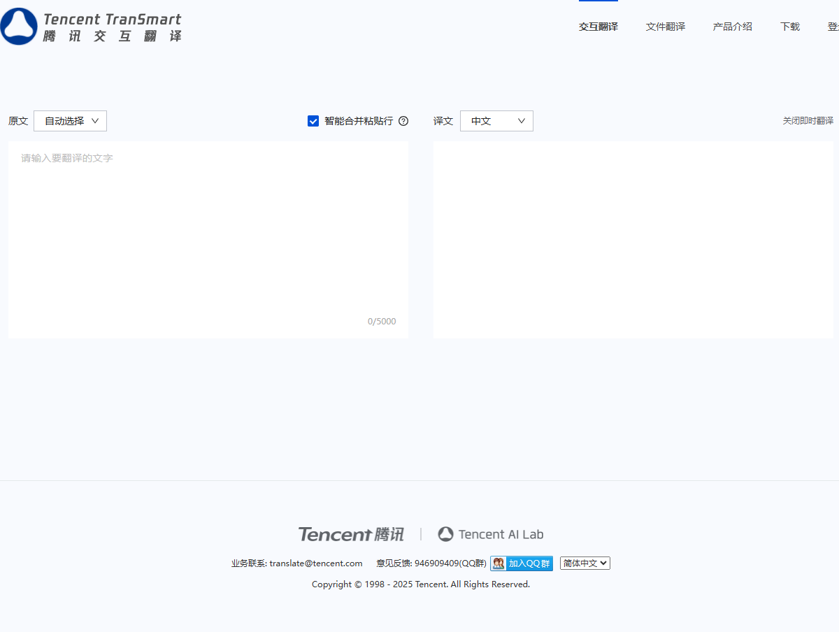 腾讯交互翻译(Transmart)是腾讯公司推出的一款多语言AI翻译工具,由腾讯AI Lab开发。以下是对腾讯交互翻译的详细介绍: