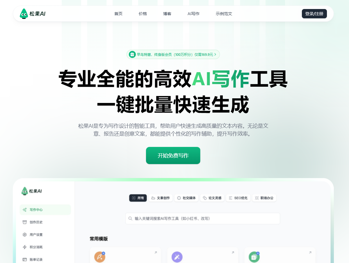 松果AI写作 是一款由成都数智一二三科技有限公司开发的专业AI写作工具,旨在通过人工智能技术帮助用户高效生成高质量文本内容,覆盖文章、报告、创意文案等多种写作场景。其核心功能与特点如下: