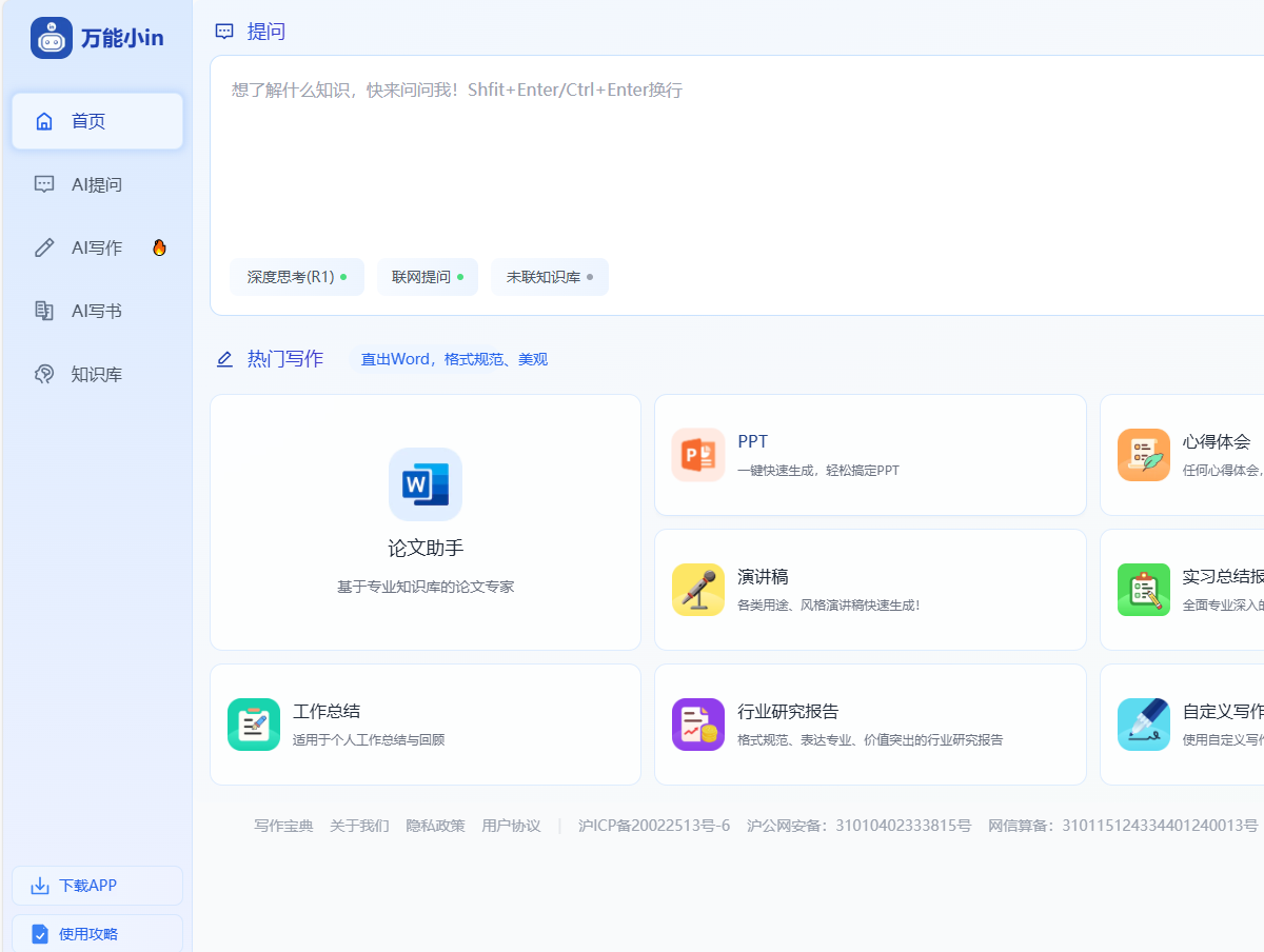 万能小in是一款基于人工智能技术开发的智能助手应用,主打“全能型创作与效率工具”定位,旨在通过AI能力帮助用户高效完成文字创作、内容生成、学习辅助等任务。以下是其核心特点与功能介绍: