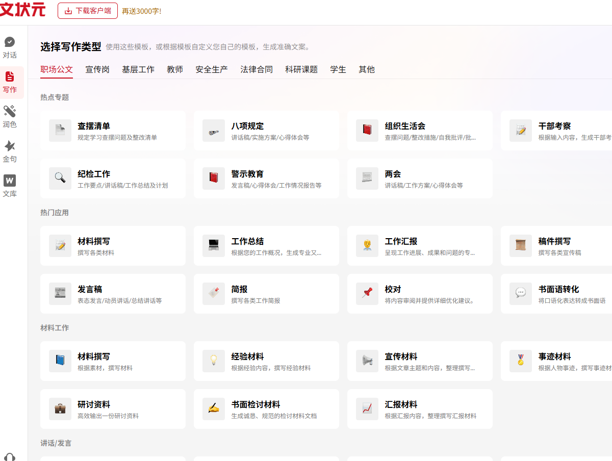 - 垂直领域深耕:相比全能型AI工具,文状元AI在文案创作、营销内容生成等场景下表现更精准,算法针对高频写作需求优化。